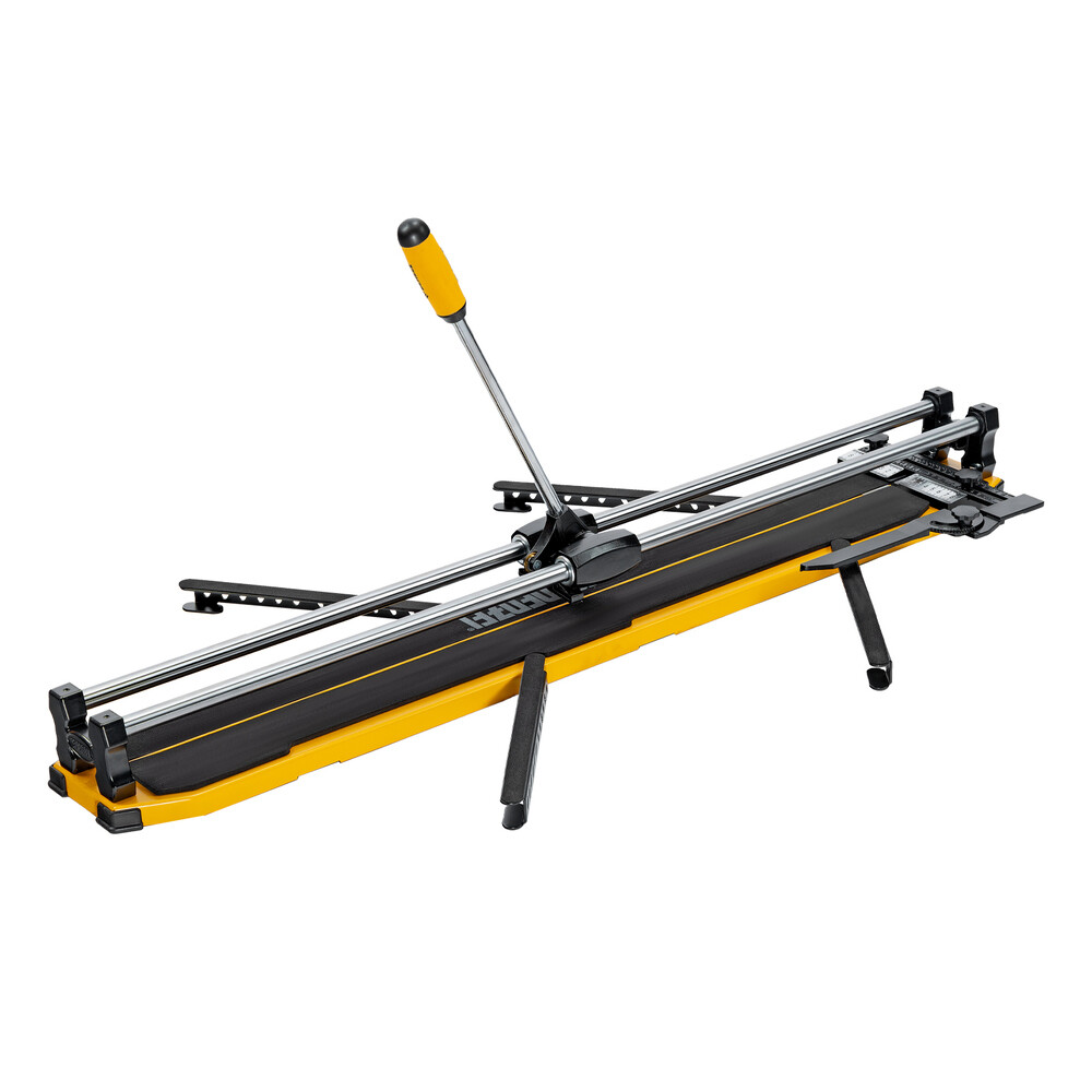 Ручной плиткорез с цельнометаллическими направляющими и стальной станиной, с кареткой на подшипниках и рукояткой-пеналом предназначен для прямой и диагональной резки керамической плитки и керамогранита длиной до 1000 мм и толщиной до 14 мм. Раздвижные упоры упрощают работу с плиткой большого размера. Инструмент используется для проведения отделочных работ.