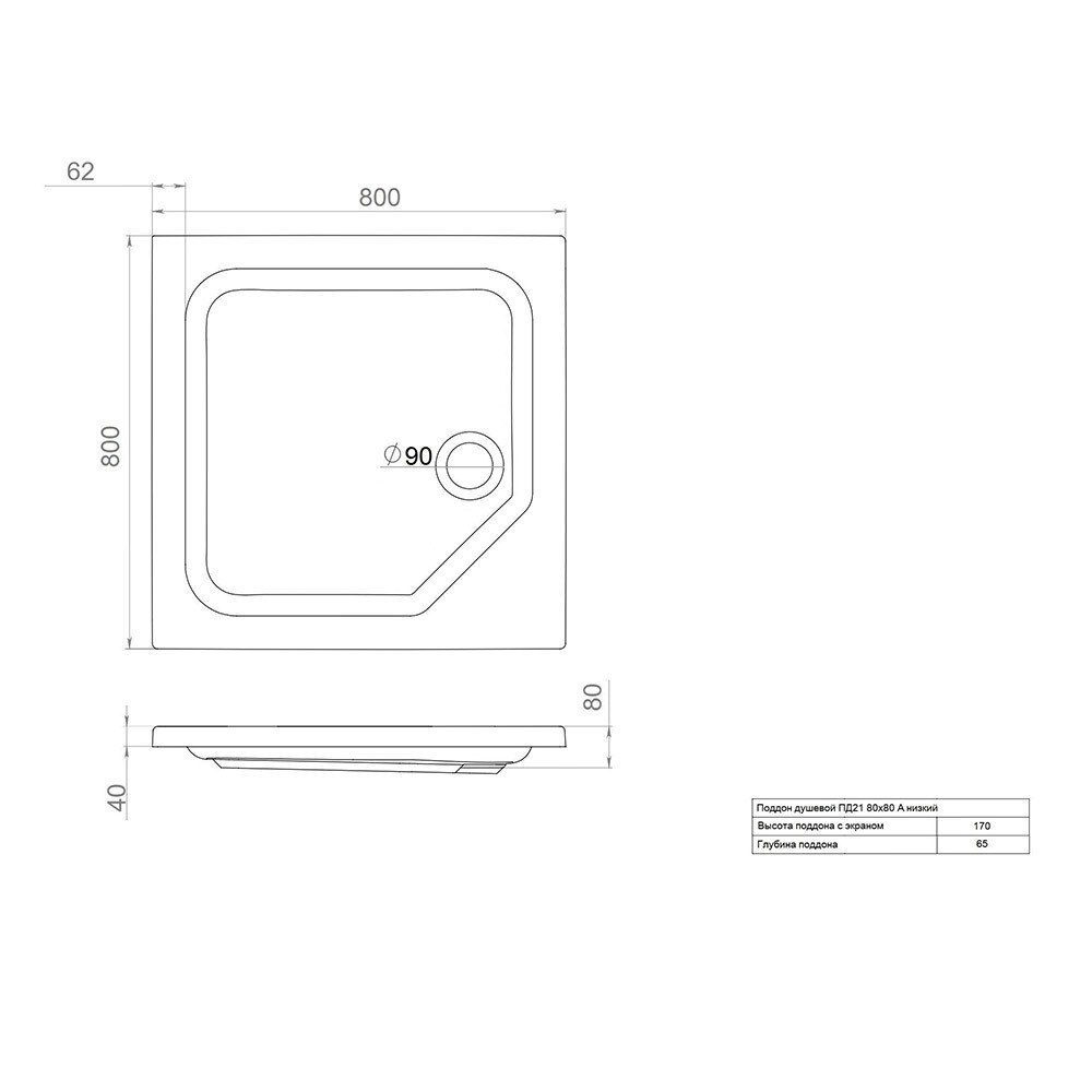 Поддон Triton акриловый 80х80х17 см квадрат белый низкий (Щ0000038719)
