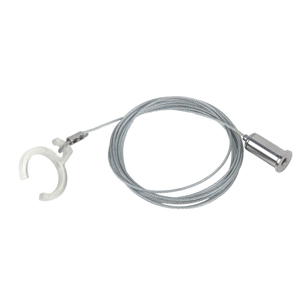 Комплектация: прочный двухметровый трос, металлическая потолочная чаша, крепление к шинопроводу, комплект крепления к потолку.