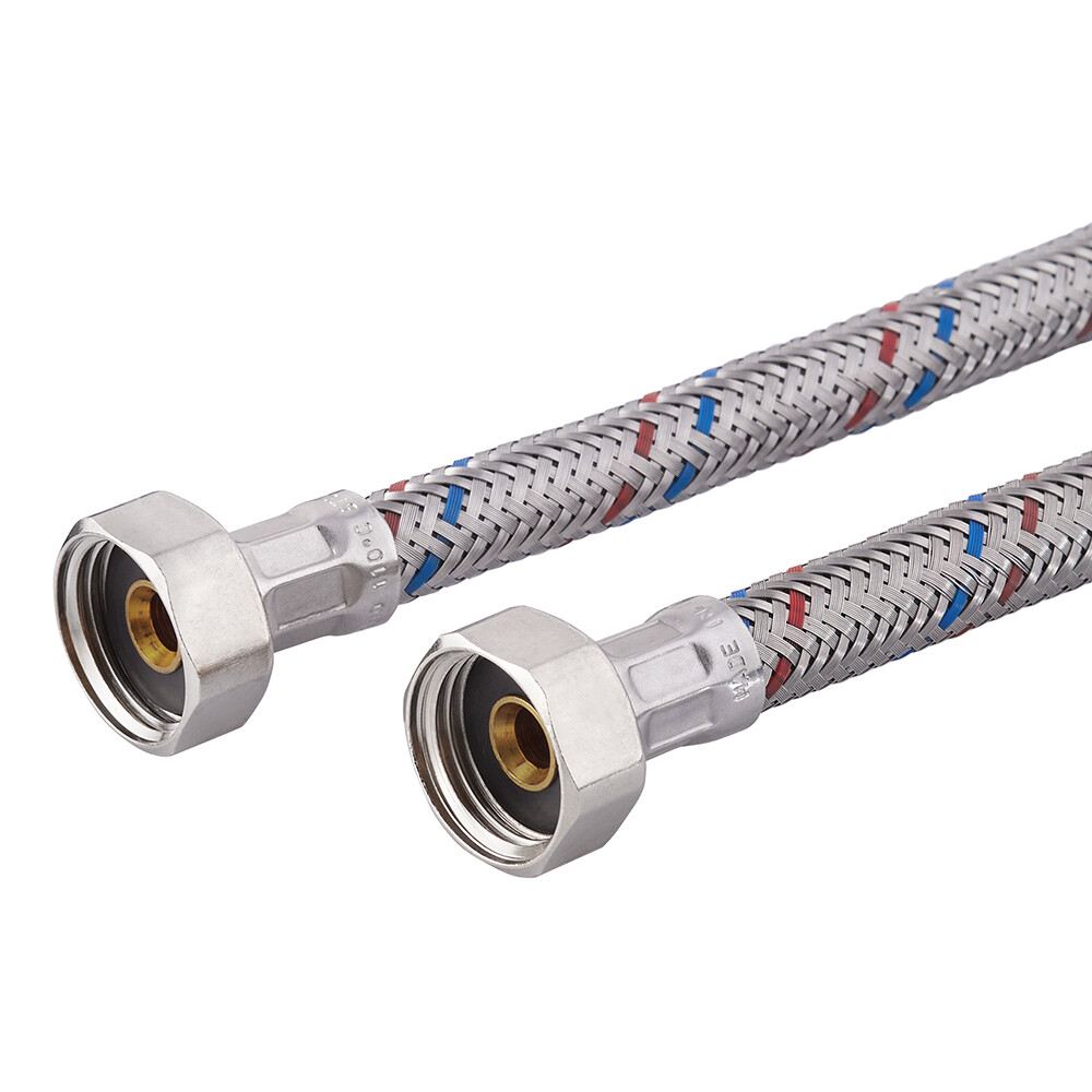 резиновый шланг (EPDM) в оплетке из нержавеющей стали, гайки и штуцер – латунь.