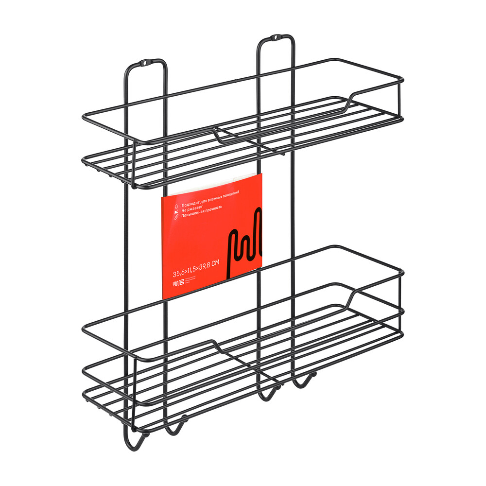 Полка для ванной ЧМЗ Лофт двухъярусная 356х115х398 мм металл черная (513-002-01)