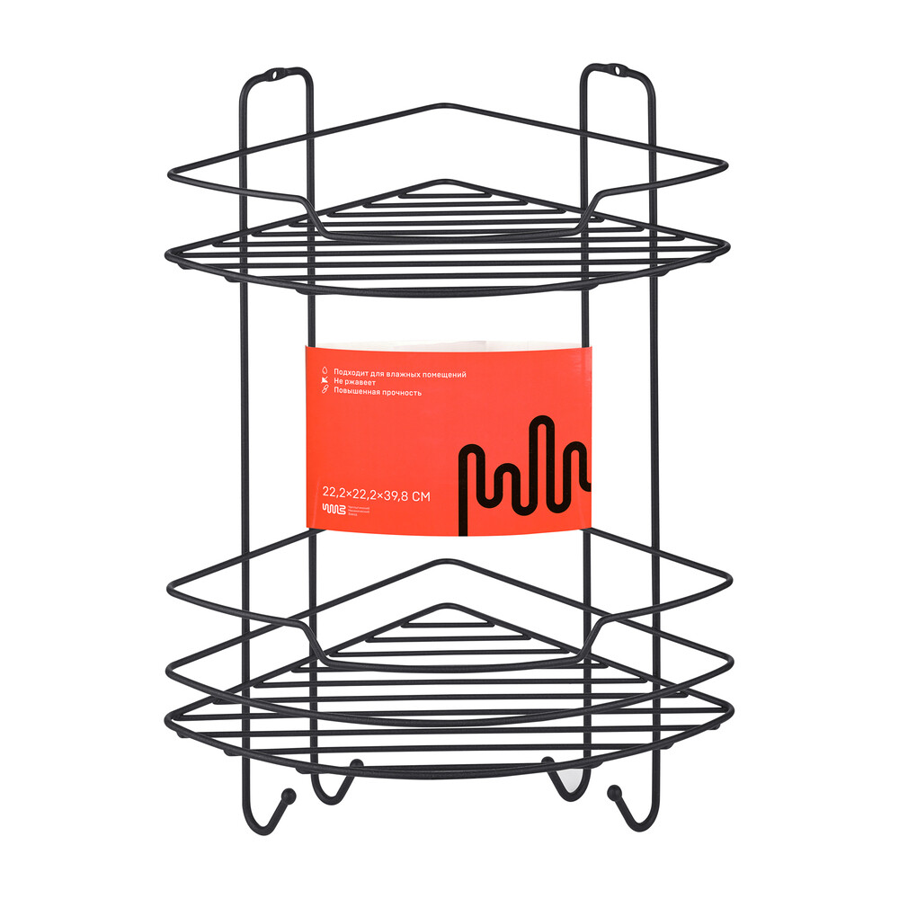 Полка для ванной ЧМЗ Лофт угловая двухъярусная 222х222х398 мм металл черный муар (513-005-02)