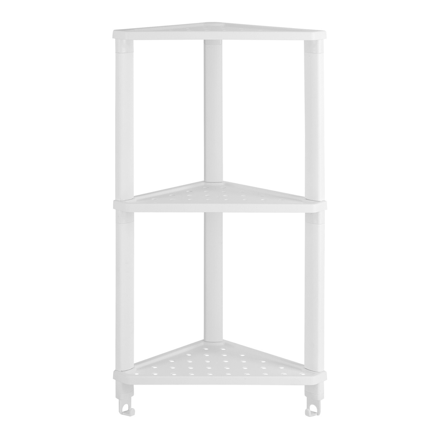 Полка для ванной Violet Vikea угловая трехъярусная с крючками 365х260х680 мм пластик белая (787306)