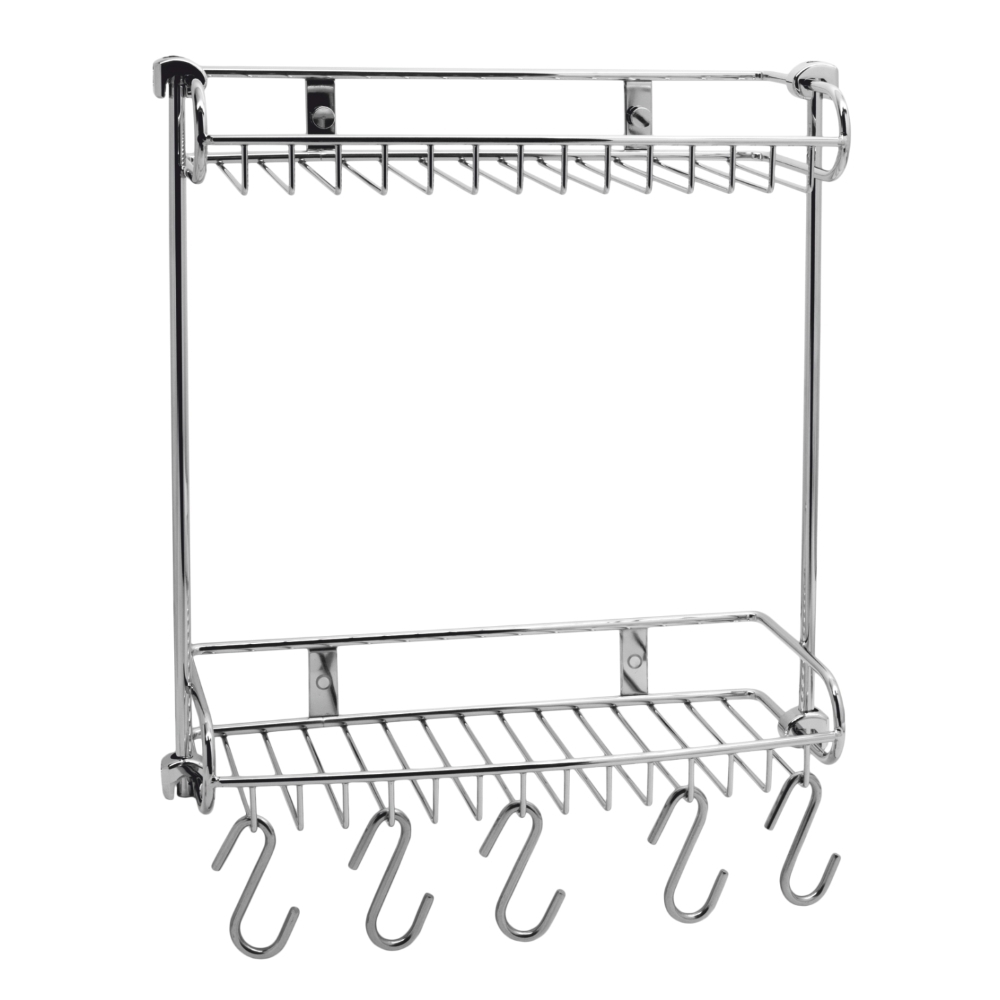 Полка для ванной WasserKraft двухъярусная с крючками 130х326х342 мм металл хром (K-1422)