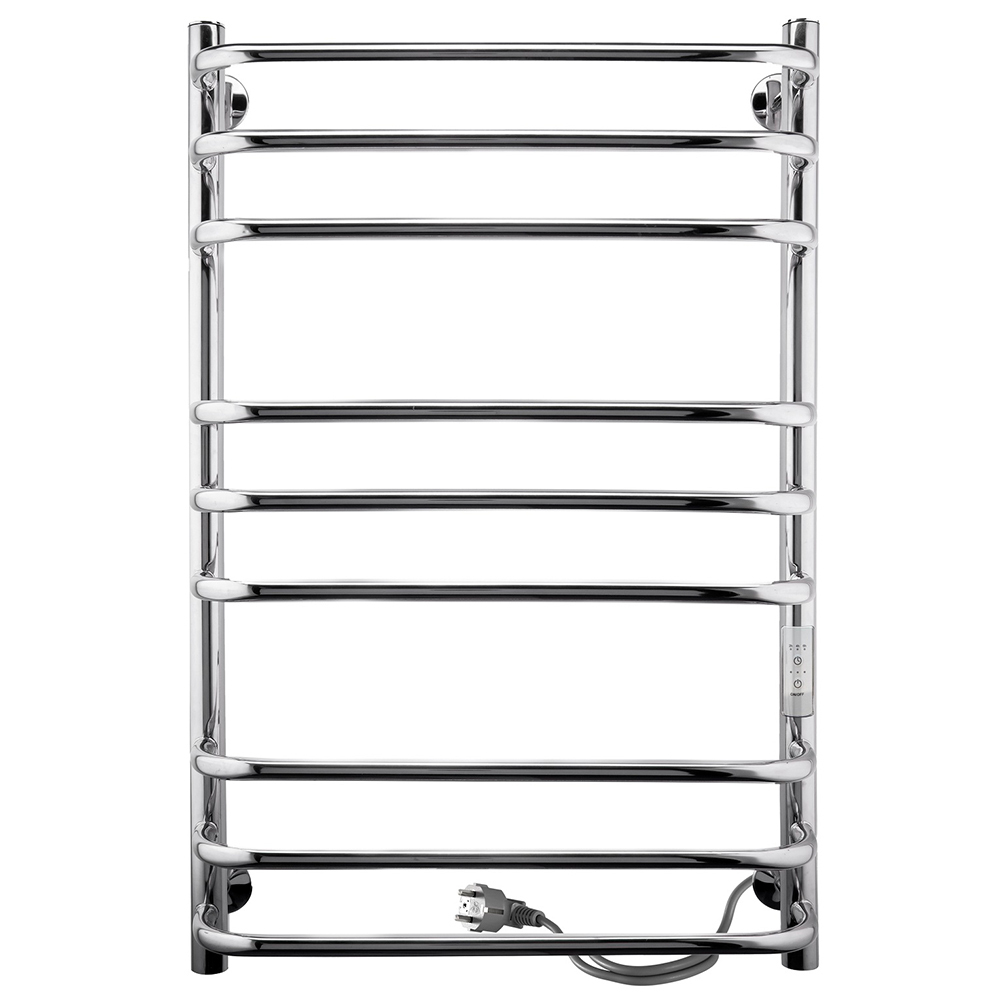 Полотенцесушитель электрический Indigo Brace Lux в классической форме «лесенка». Выполнен в цвете «хром», имеет безупречный блеск благодаря электрохимической полировке. С помощью терморегулятора можно регулировать температуру в диапазоне от 40 до 50 градусов (с шагом 5 градусов) — уровень температуры показывается количеством горящих светодиодов. Таймер можно настроить на отключение через 2, 4, 6 часов. Подключение осуществляется двумя способами: скрытое подключение к электропроводке через модуль скрытого подключения в стену или прямым электропроводом длиной 1,1 метра в розетку.