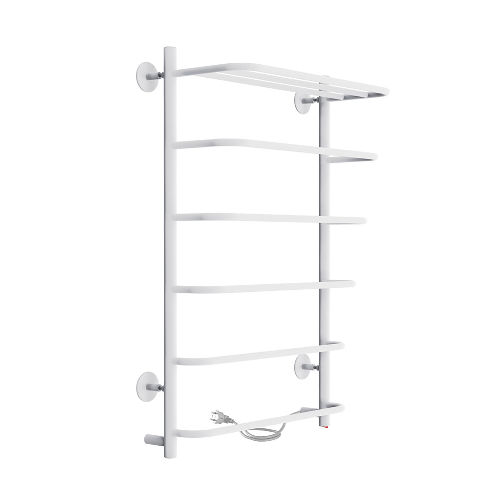 Полотенцесушитель электрический Indigo оснащен кнопкой включения на нижней части стойки. Универсальность изделия предусматривает подключение через прямой провод, который переставляется на нужную вам сторону или скрытое подключение без покупки дополнительного переходника. Длина прямого провода 1,1 метр. Специальная технология нагревательного кабеля защищает полотенцесушитель от перегрева, что влияет на длительность срока службы. В изделии из-за конструктивной особенности не греются две перекладины в полке.