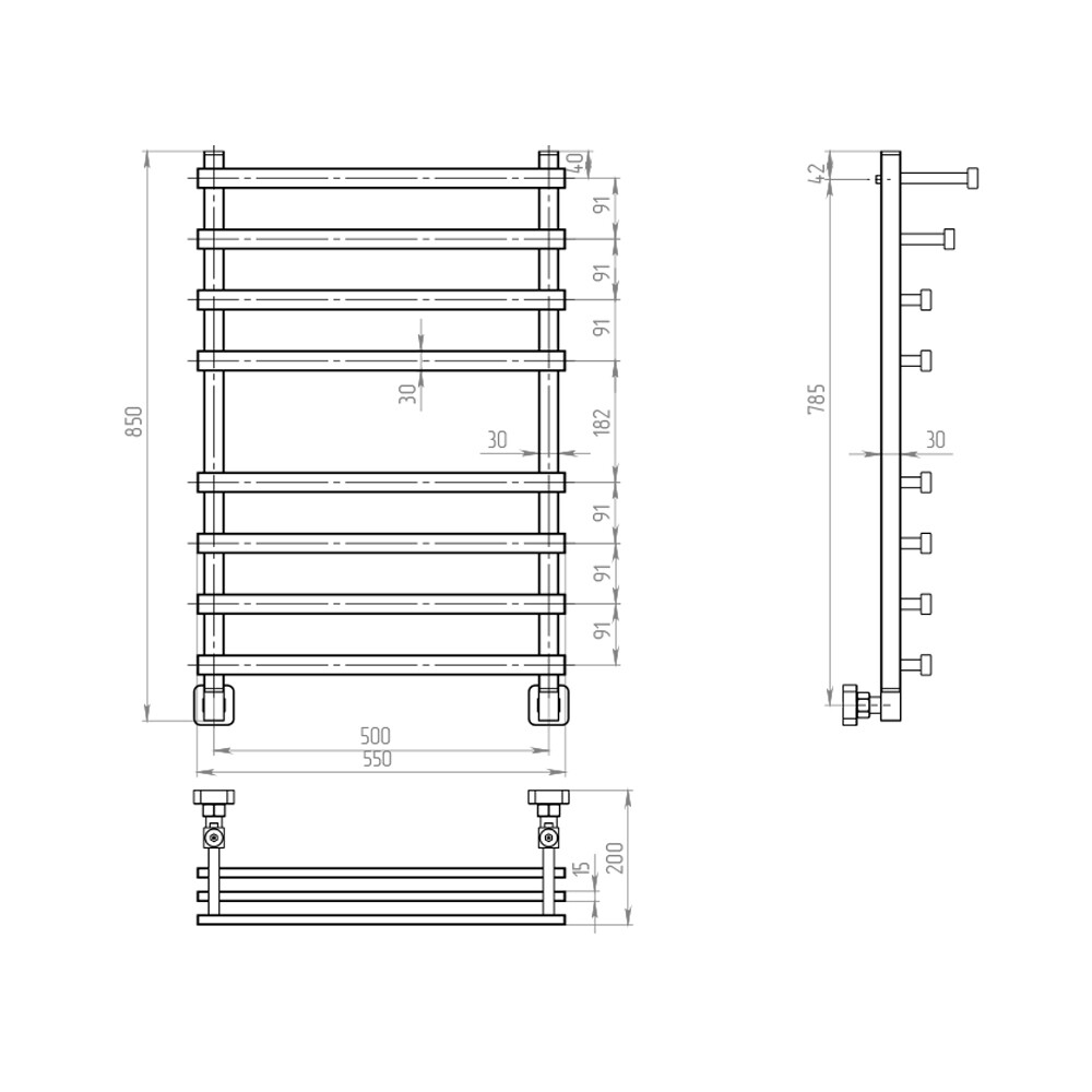 Полотенцесушитель водяной Indigo Askel в размере 800х500 мм выбирают за его классический вид лесенки c каскадным расположением переклади и функциональность.