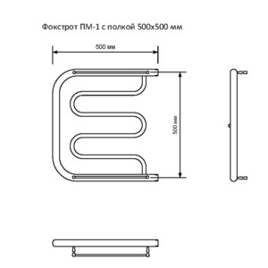 Полотенцесушитель водяной MyFrea 500х500 мм фокстрот с боковым подключением 500 мм с полкой хром
