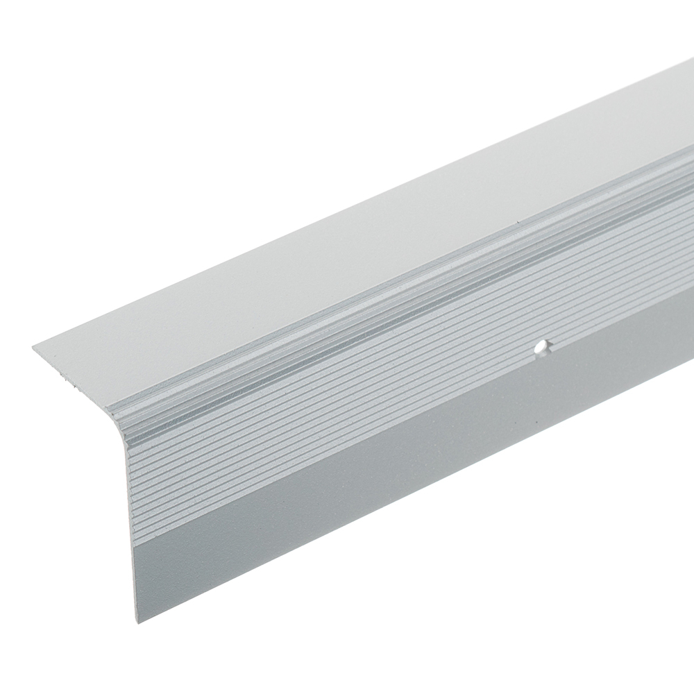 Порог угловой. Предназначен для фиксации краев напольных покрытий на ступенях, защиты угловых поверхностей ступеней, а также для препятствия скольжению. Комплектуется саморезами и дюбелями.