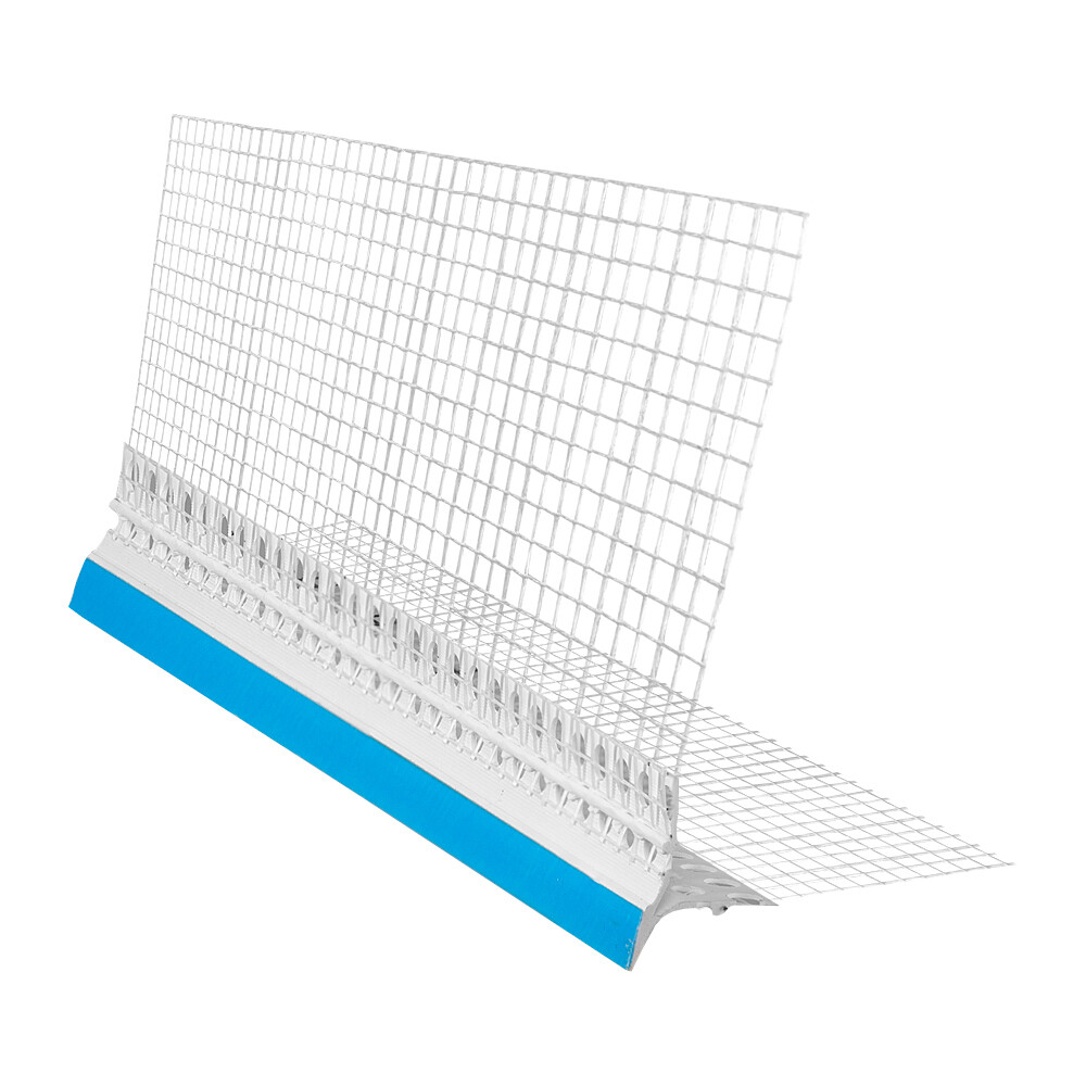 Предназначен для армирования и выравнивания штукатурного слоя внешних горизонтальных углов фасадов зданий. Также используют для усиления дверных и оконных проемов, на коробках рольставен, несущих балконных основаниях. Обеспечивает отвод воды и конденсата с вертикальных зон. Сетка зафиксирована на профиле с помощью ультразвука, что исключает возможность ее отрыва.