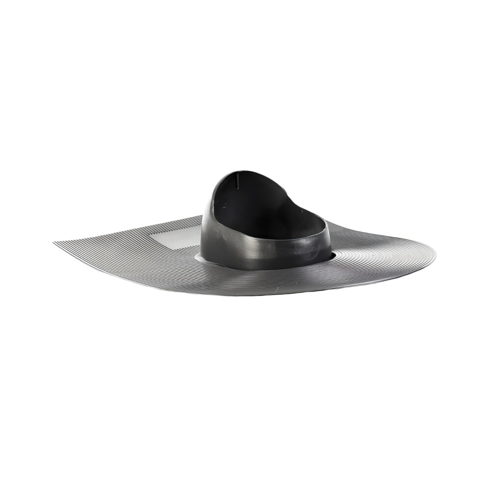 Проходной элемент служит основанием для монтажа вентиляционного или канализационного выхода на кровлях из гибкой черепицы. На верхней и нижней поверхности имеет систему борозд, направленную на более жесткое сцепление через мастику с соприкасающимися материалами.