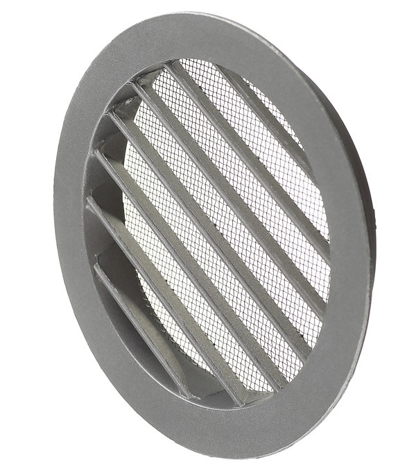 Изготавливается из алюминиевого сплава. Оборудована антимоскитной сеткой из нержавеющей стали, защищающей систему вентиляции от попадания мусора. Оснащена круглым фланцем для монтажа с воздуховодами. Решетка имеет наклонные жалюзи.