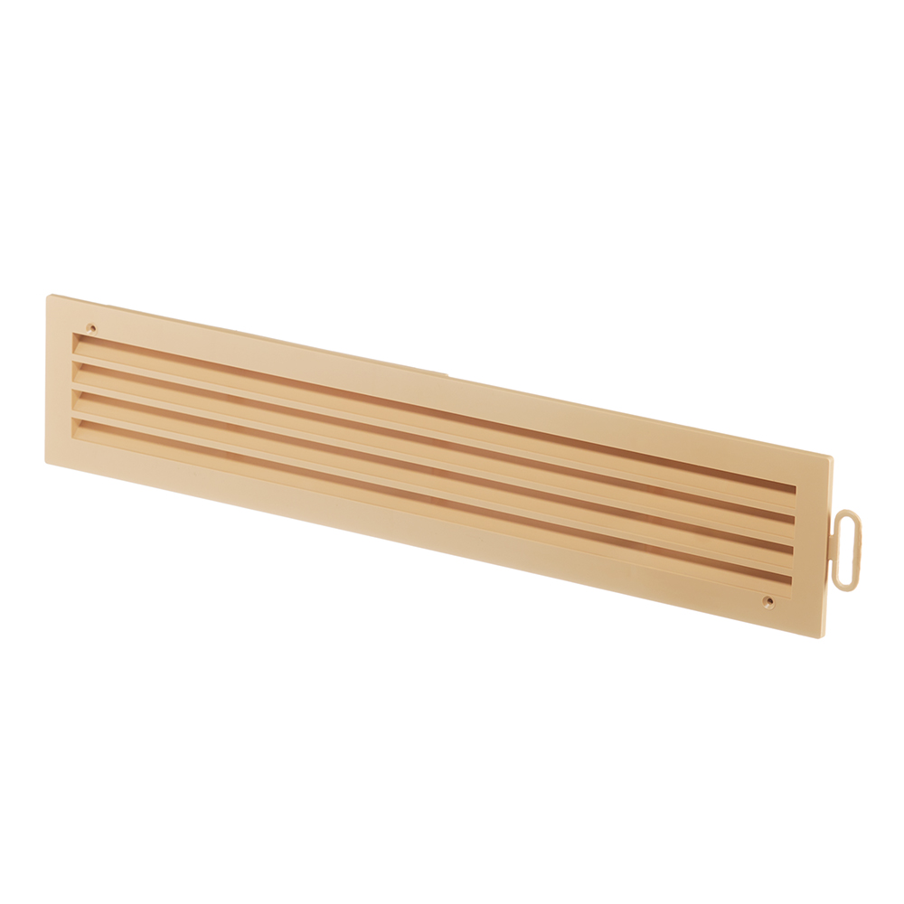 Предназначена для монтажа в полотно межкомнатных дверей, ванных комнат, туалетов, кухонь и т.д. Способствует правильной циркуляции воздуха между помещениями. Решетка состоит из двух элементов. Части решетки соединяются непосредственно друг с другом в пазы и закрепляются при помощи шурупов. Может устанавливаться в подоконники для правильного распределения теплого воздуха от батарей центрального отопления. Имеет наклонные жалюзи. Минимальная толщина дверного полотна для — 25 мм. Изготавливается из высококачественного пластика бежевого цвета.
