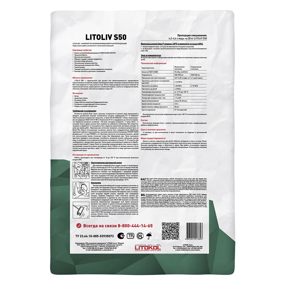 Ровнитель (наливной пол) универсальный Litokol Litoliv S50 самовыравнивающийся 20 кг