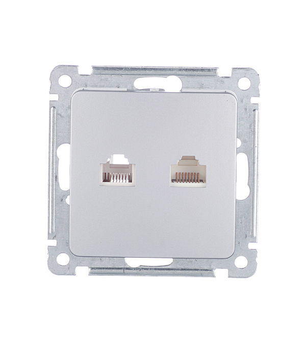 Розетка компьютерная/ телефонная Hegel Master встраиваемая серебро RJ11/ RJ45 (РСКТ-440-06)