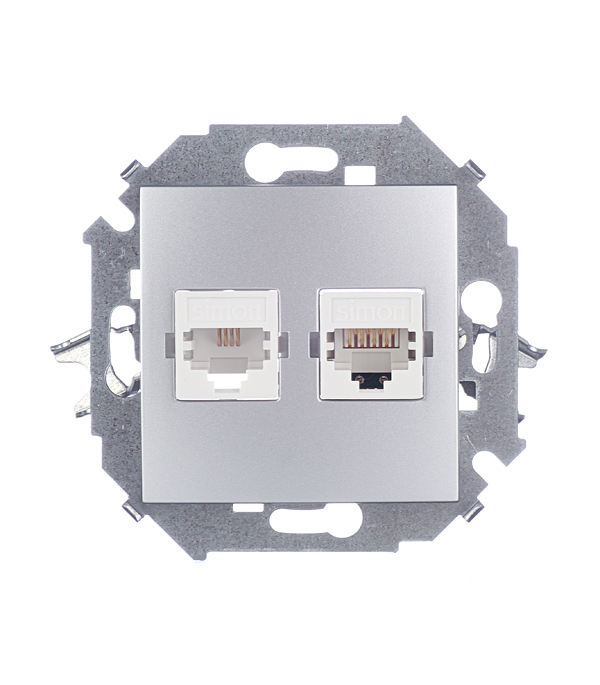 Розетка компьютерная/ телефонная Simon 15 встраиваемая алюминий RJ11/ RJ45 (1591590-033)