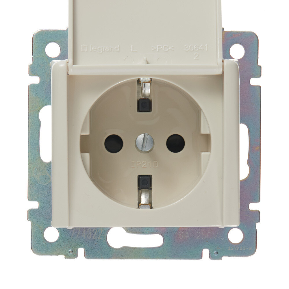 Розетка Legrand Valena встраиваемая слоновая кость с крышкой (695614)