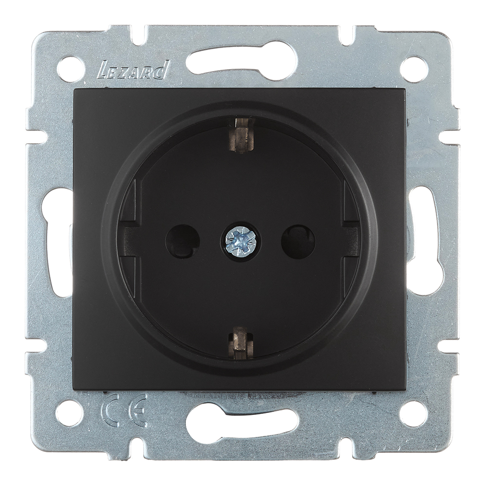 Предназначена для подключения электроприборов к силовой электрической сети. Розетка с контактами заземления, с защитными шторками, черный бархат, скрытой установки.