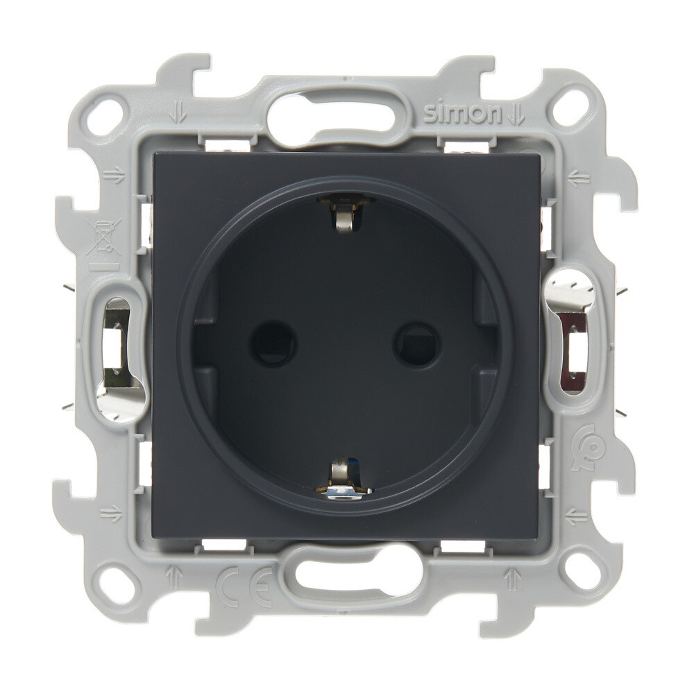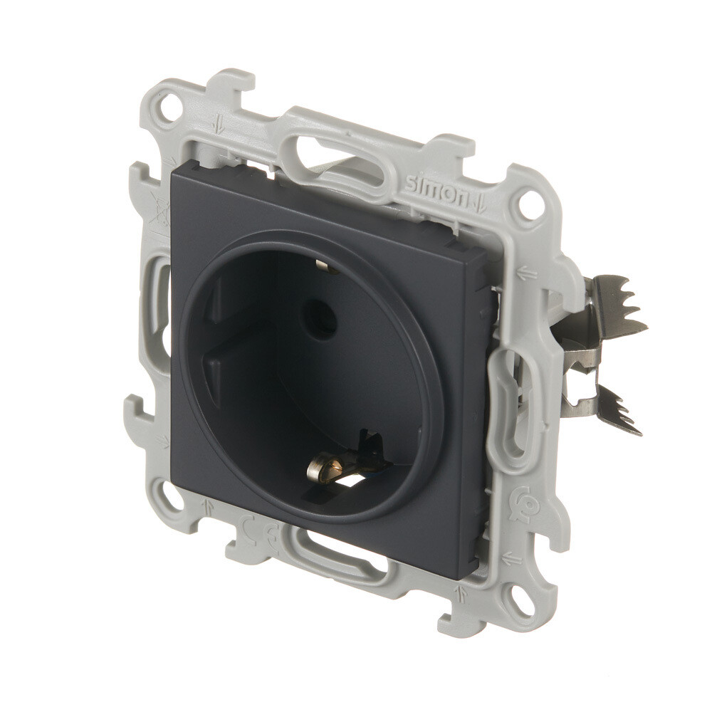 Розетка Simon 24 Harmonie встраиваемая графит со шторками (2420432-038)
