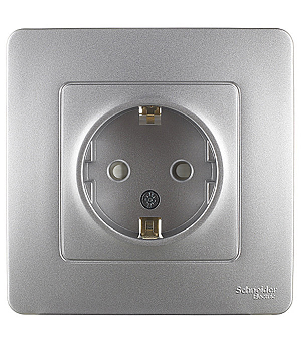 Розетка Systeme Electric Blanca встраиваемая алюминий со шторками (BLNRS001113)