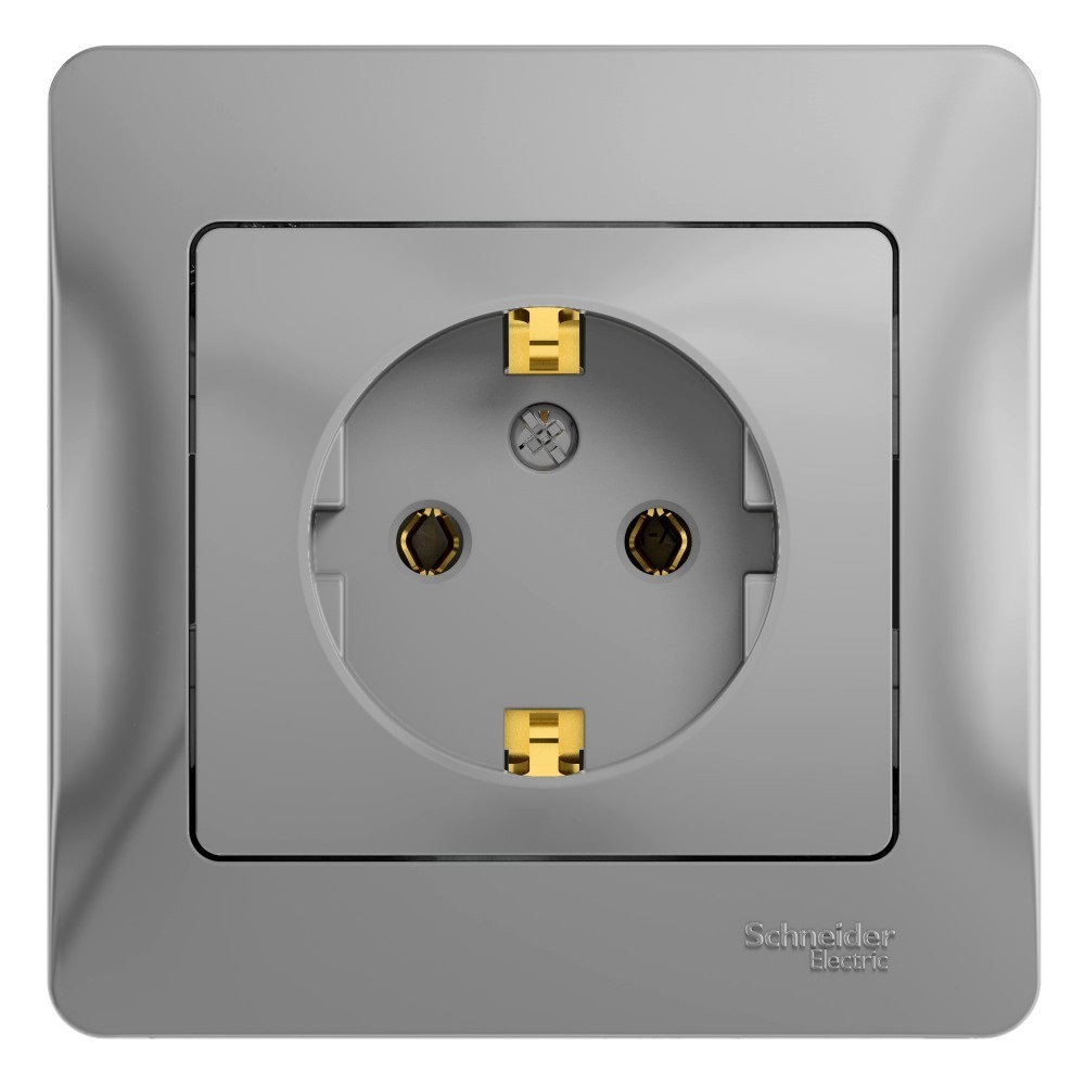 Розетка Systeme Electric (ранее Schneider Electric) серии Glossa (в сборе) одинарная без заземления и без шторок подходит для сетей 250 В, на ток 16 А.