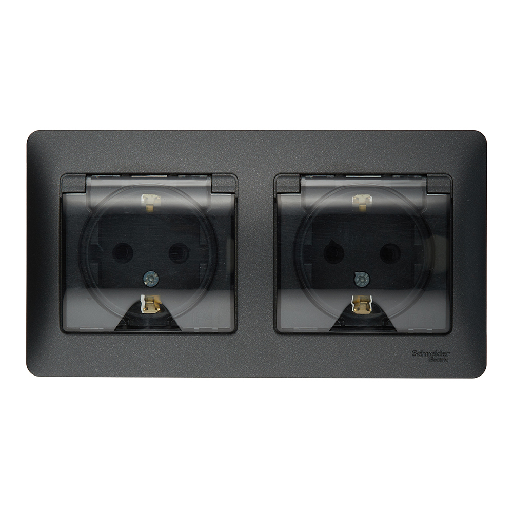 Розетка Systeme Electric Glossa встраиваемая антрацит со шторками с крышкой (GSL000747)