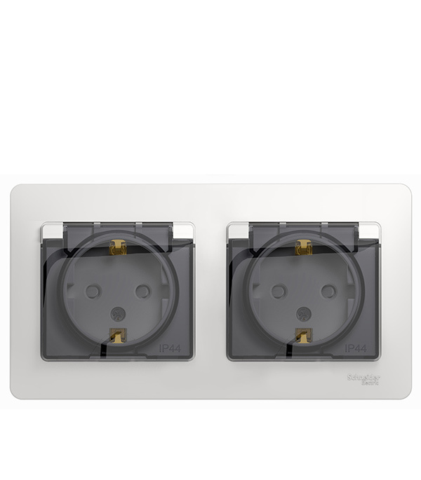 Розетка Systeme Electric Glossa встраиваемая белая со шторками с крышкой (GSL000147)