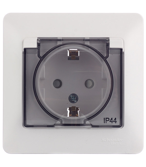 Розетка Systeme Electric Glossa встраиваемая белая со шторками с крышкой (GSL000148)
