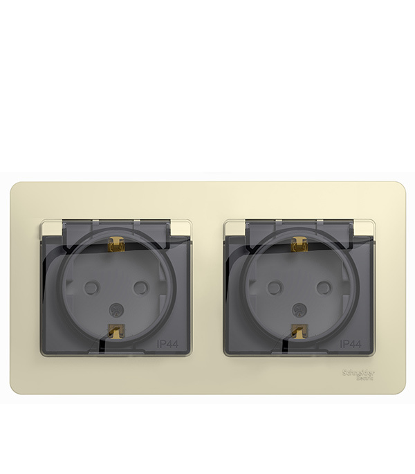 Розетка Systeme Electric Glossa встраиваемая бежевая со шторками с крышкой (GSL000247)
