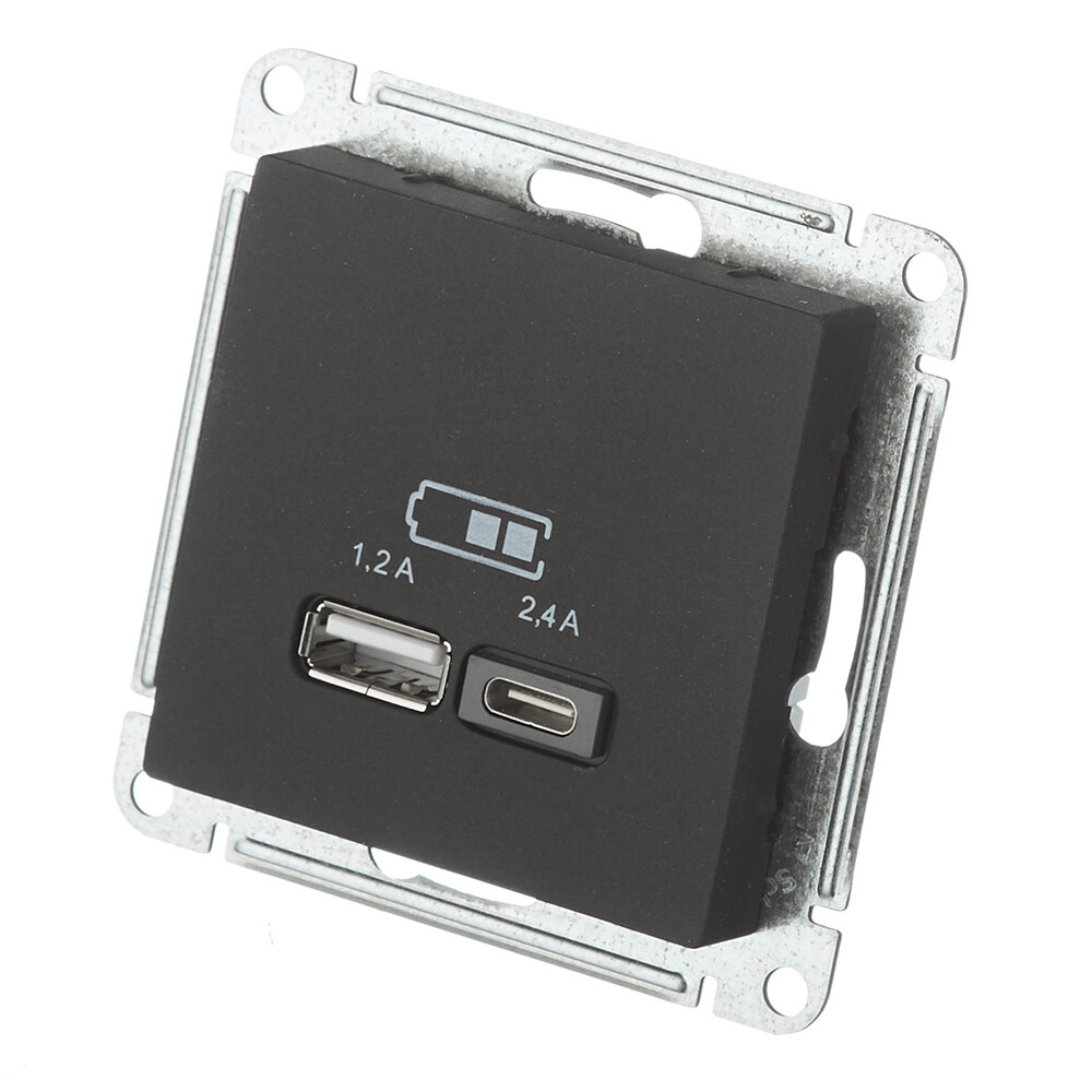 Розетка USB Systeme Electric AtlasDesign встраиваемая карбон USB-A/ Type-C (ATN001039)