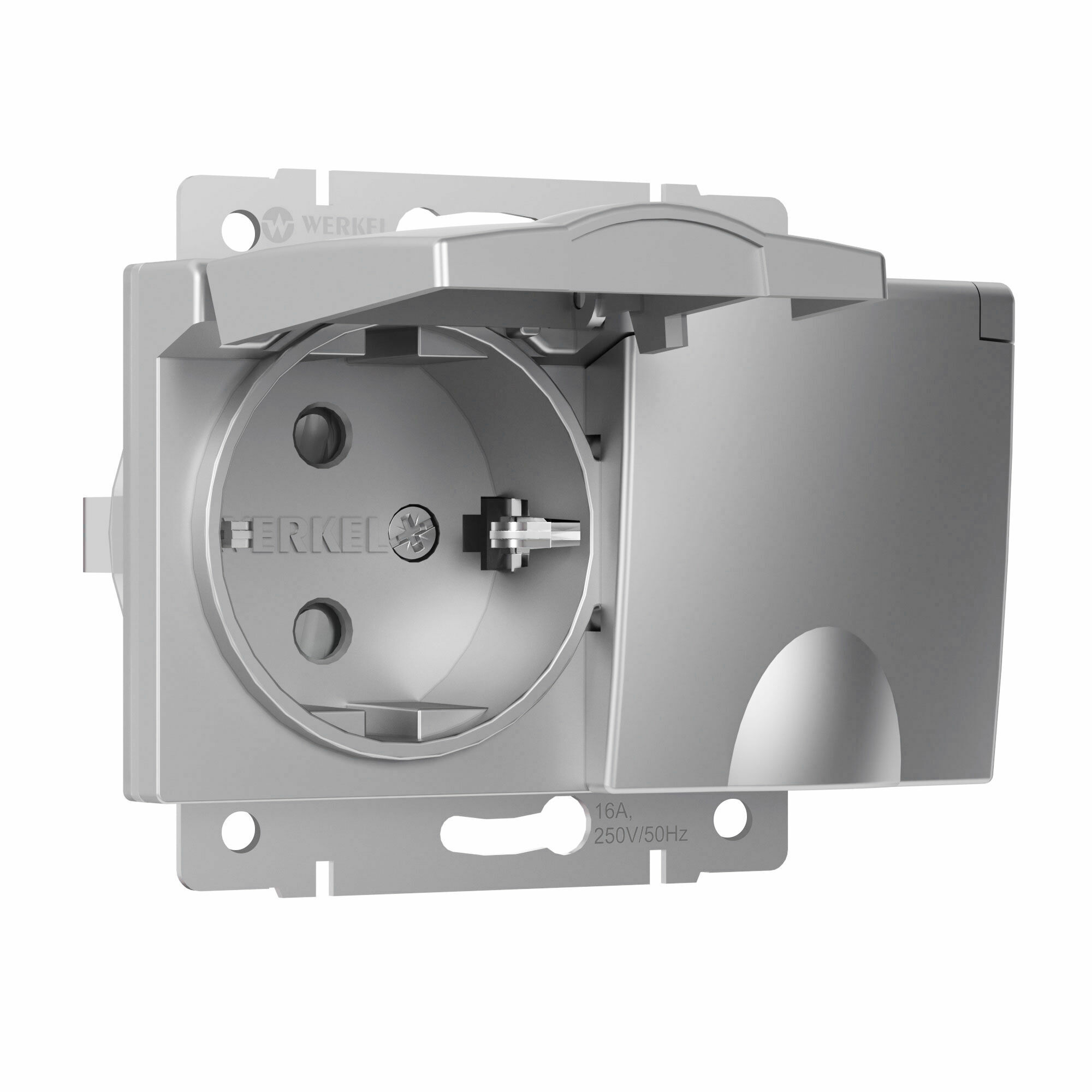 Розетка Werkel встраиваемая серебряная со шторками с крышкой (a057285)
