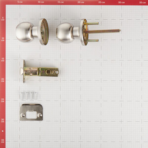 Комплектация: 2 ручки, защелка, ответная планка, пластиковая вставка под ответную планку и шурупы.
