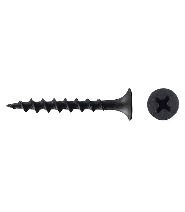 Саморезы имеют потайную головку с крестообразным шлицем PH2, острый наконечник и редкую резьбу. Производятся из углеродистой стали с последующим оксидированием для защиты от коррозии.