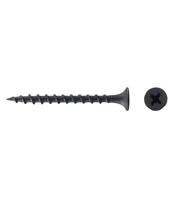 Саморезы имеют потайную головку с крестообразным шлицем PH2, острый наконечник и редкую резьбу. Производятся из углеродистой стали с последующим оксидированием для защиты от коррозии.