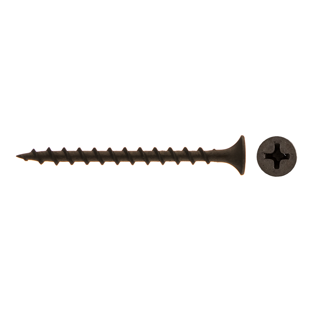 Саморезы имеют потайную головку с крестообразным шлицем PH2, острый наконечник и редкую резьбу. Производятся из углеродистой стали с последующим оксидированием для защиты от коррозии.