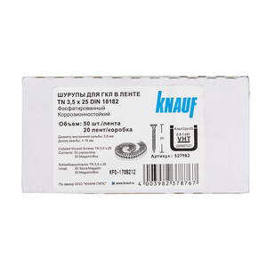 Главная / Каталог / Крепеж / Саморезы и шурупы / Саморезы по металлу / Саморезы гипсокартон-металл / Саморезы ГМ 25×3,5 мм в ленте TN Кнауф (1000 шт.)