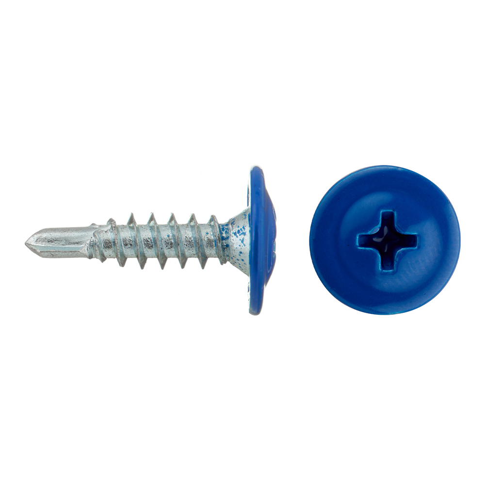 Главная / Каталог / Крепеж / Саморезы и шурупы / Саморезы по металлу / Саморезы с прессшайбой / Саморезы клопы 16×4,2 мм с буром Daxmer (200 шт.) синий RAL 5005
