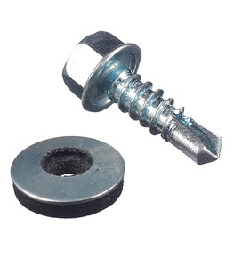 Саморезы имеют шестигранную головку под ключ 8 мм и шайбу с резиновой уплотняющей прокладкой для герметизации соединения.