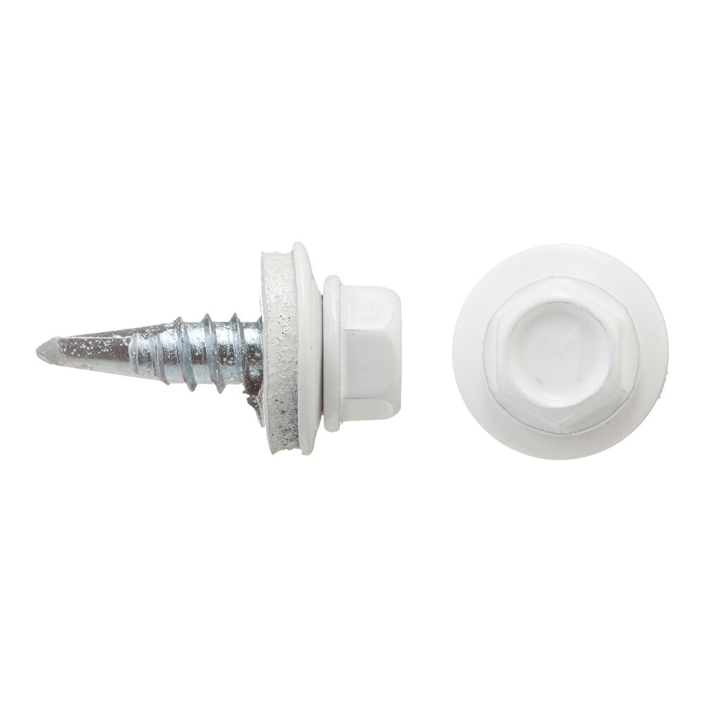 Саморезы кровельные с буром 19х5,5 мм металл-металл сигнальный белый RAL 9003 Daxmer (250 шт.)