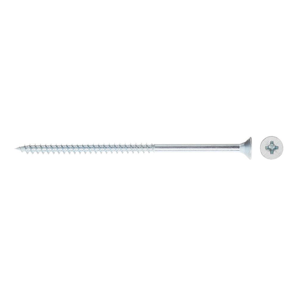 Саморезы имеют потайную головку с крестообразным шлицем PZ 3 и острый наконечник. Производятся из оцинкованной стали.