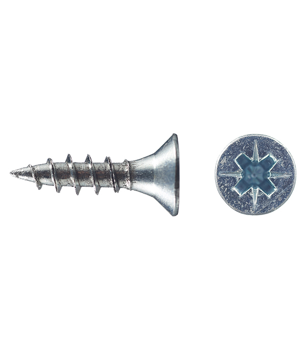 Саморезы имеют потайную головку с крестообразным шлицем PZ 2 и острый наконечник. Производятся из оцинкованной стали.