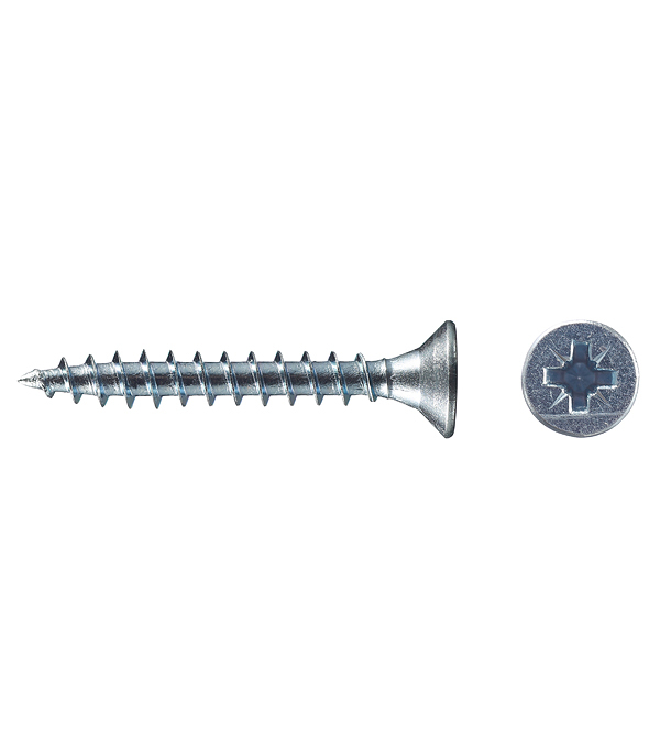 Саморезы имеют потайную головку с крестообразным шлицем PZ 2 и острый наконечник. Производятся из оцинкованной стали.