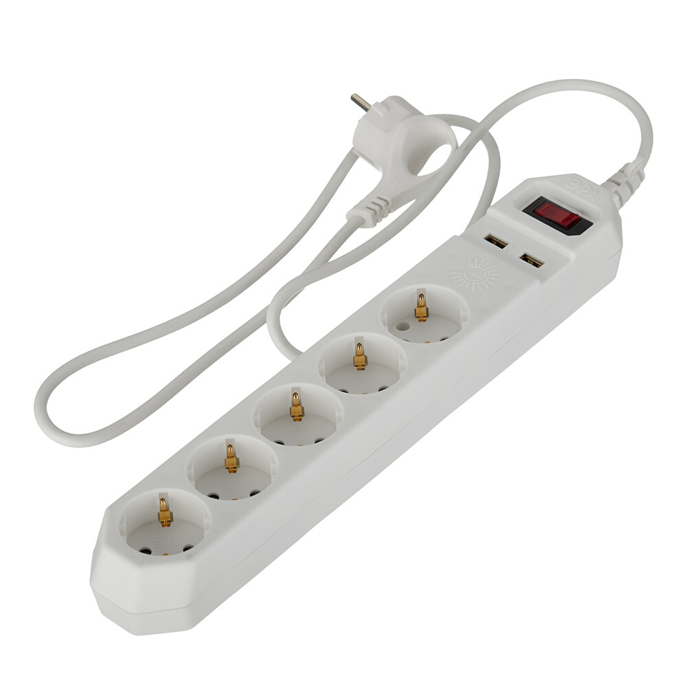 Сетевой фильтр Эра 5 розеток 1,5 м 10 А 2,2 кВт белый (Б0019037)