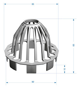 Сетка воронки предотвращает попадание в водослив листвы, хвои и мусора.