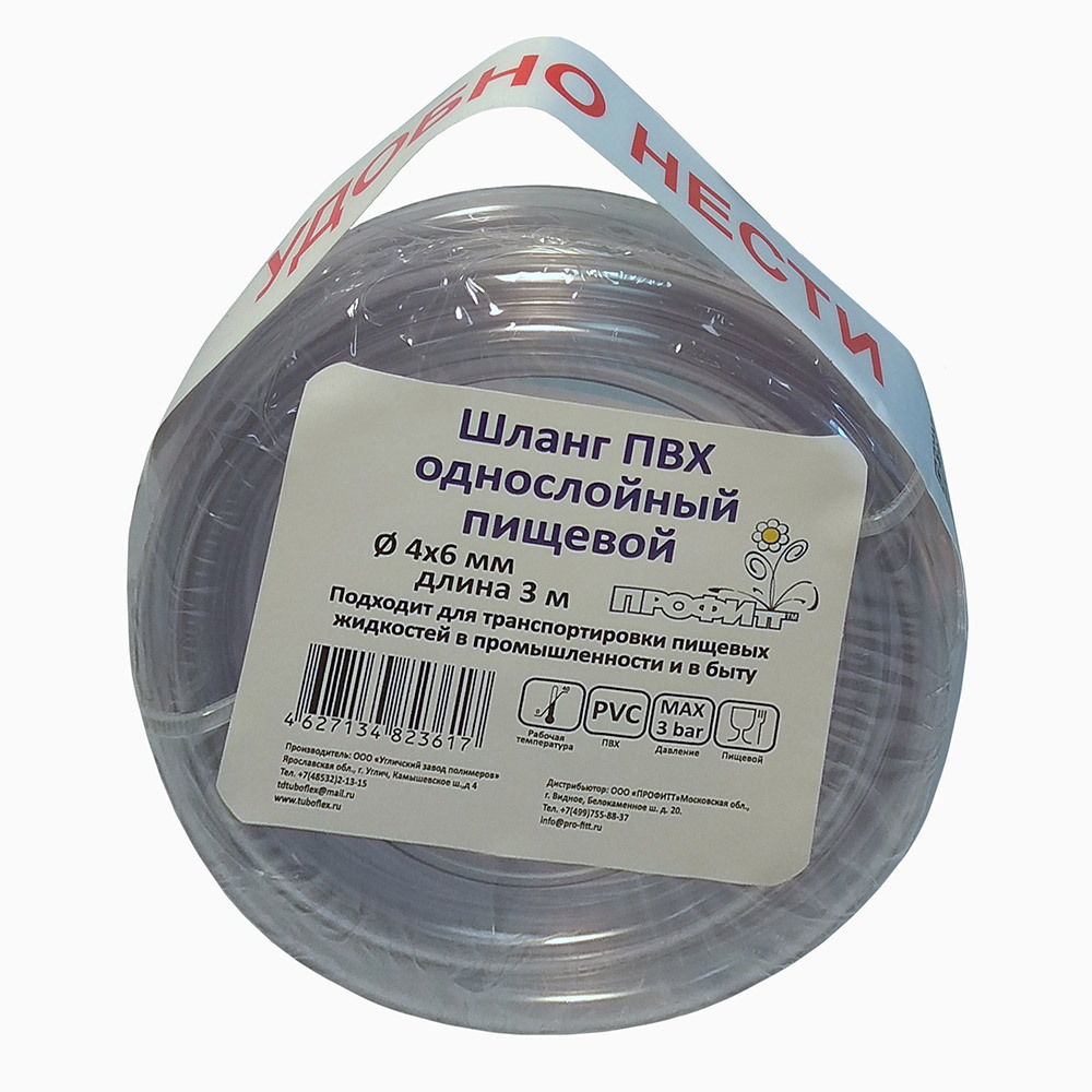 Шланг пищевой 4х6 мм 3 м однослойный Профитт ПВХ (4823617)