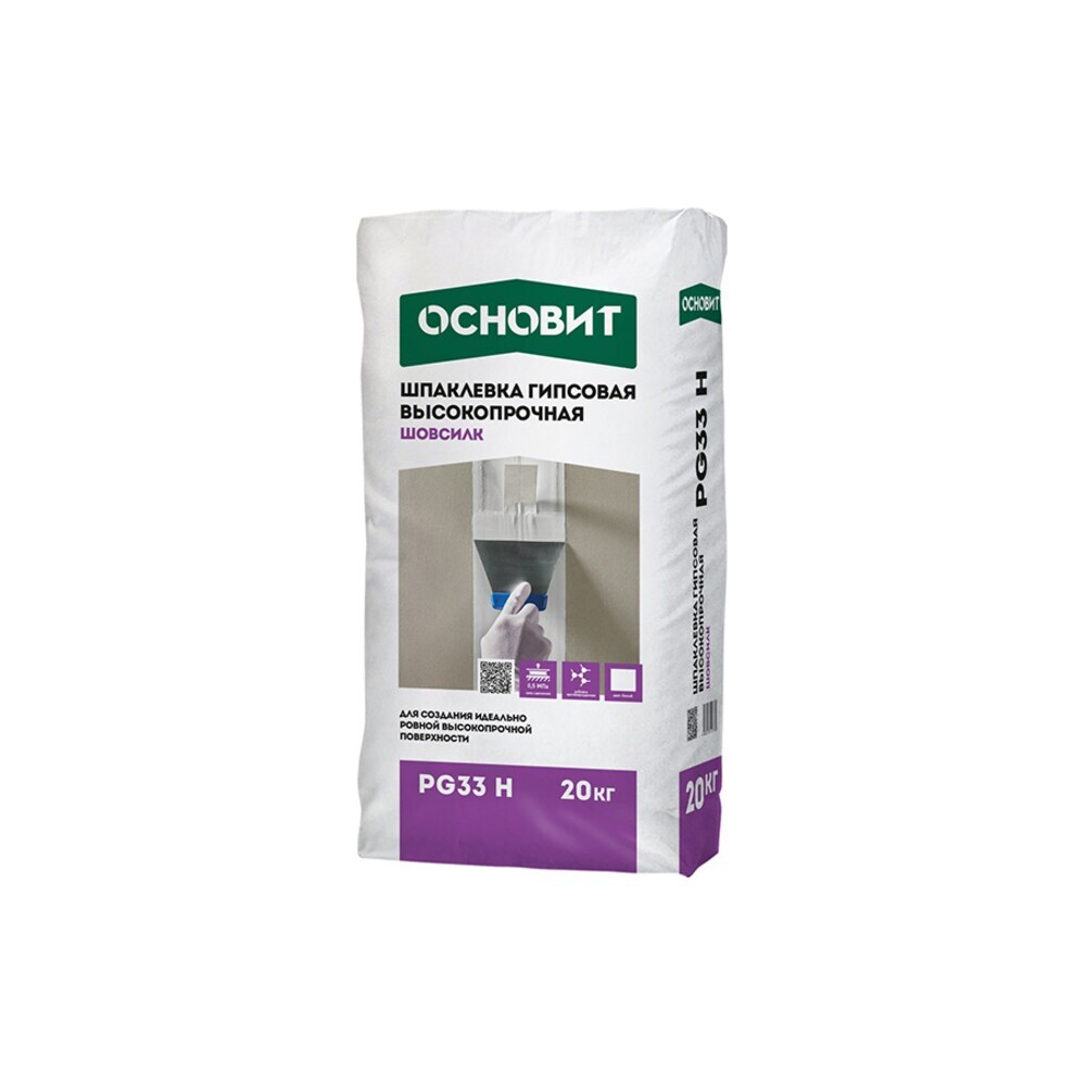 Шпаклевка гипсовая Основит Шовсилк PG33 Н предназначена для заделки стыков, швов и возможных повреждений ГКЛ, ГВЛ, ПГП и СМЛ. Заделку стыковочных швов листов с полукруглой утоненной кромкой (ПЛУК) возможно производить без использования армирующих шовных лент.