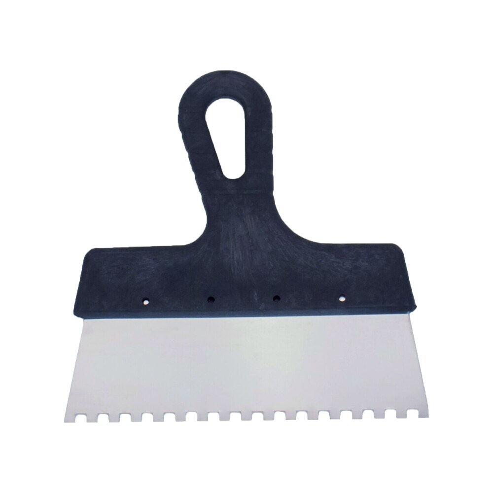 Зубчатый шпатель нержавеющая сталь,подойдет для раствора или плиточного клея. Инструмент позволяет эффективно и быстро выровнять слой.