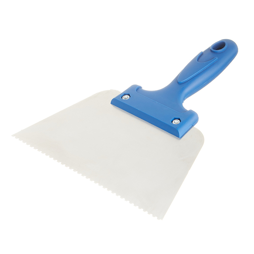 Предназначен для проведения работ по укладке гибких напольных покрытий в качестве инструмента для нанесения клеевого раствора.