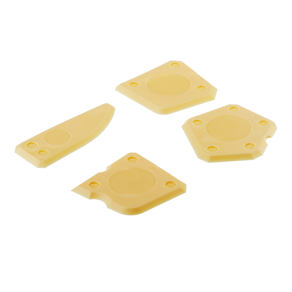 Фигурные шпатели-мягкие, не царапают поверхность, резина – это гибкий материал, который хорошо подходит для обработки фигурных поверхностей, ведь он отлично подстраивается под любые разновидности основы. Набор подходит для выравнивания при работе с герметиками. С помощью таких шпателей можно тщательно и аккуратно убирать излишки материала без повреждения поверхности.