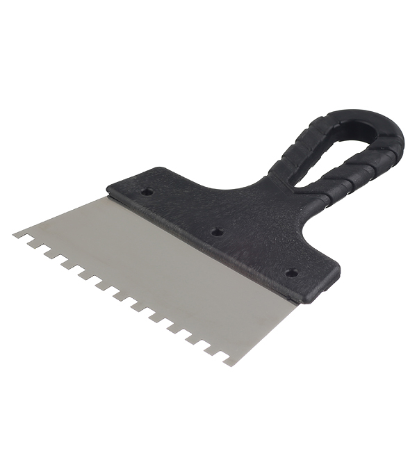 Предназначен для нанесения и распределения клеевых растворов и создания на их поверхности гребенчатой структуры при укладке керамической плитки, декоративного камня и др. Шпатель зубчатый служит для того, чтобы клеевая масса разравнивалась до одинаковой толщины слоя по всей площади материала без образования пустот.
